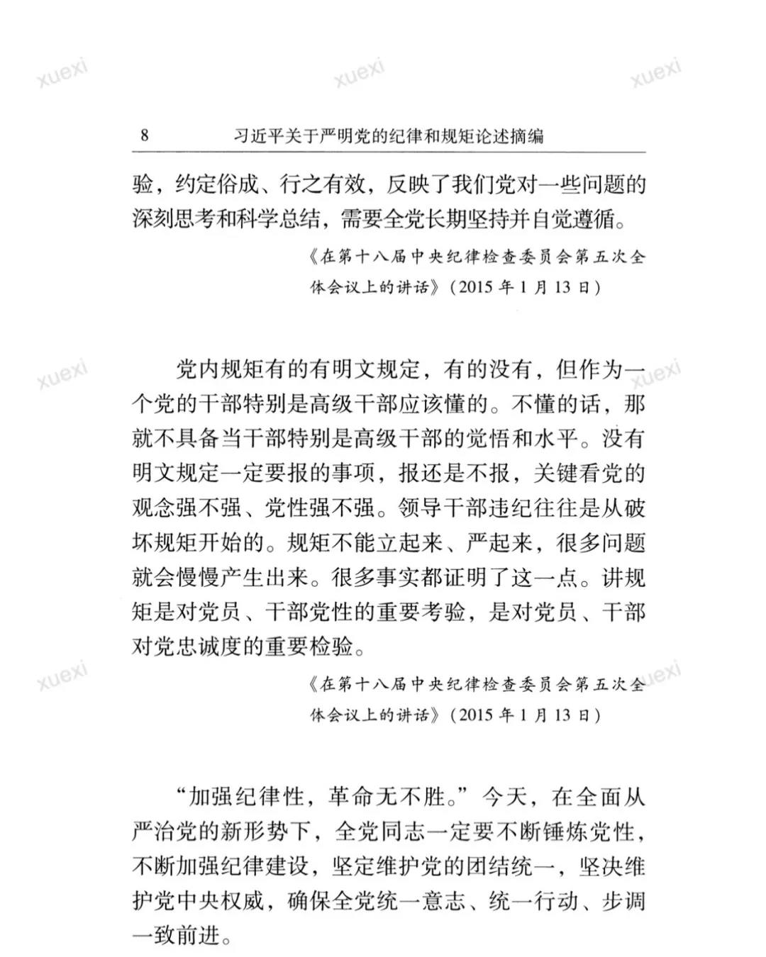 《習(xí)近(jìn)平關于嚴明(míng)黨的(de)紀律和(hé)規矩論述摘編》(一)